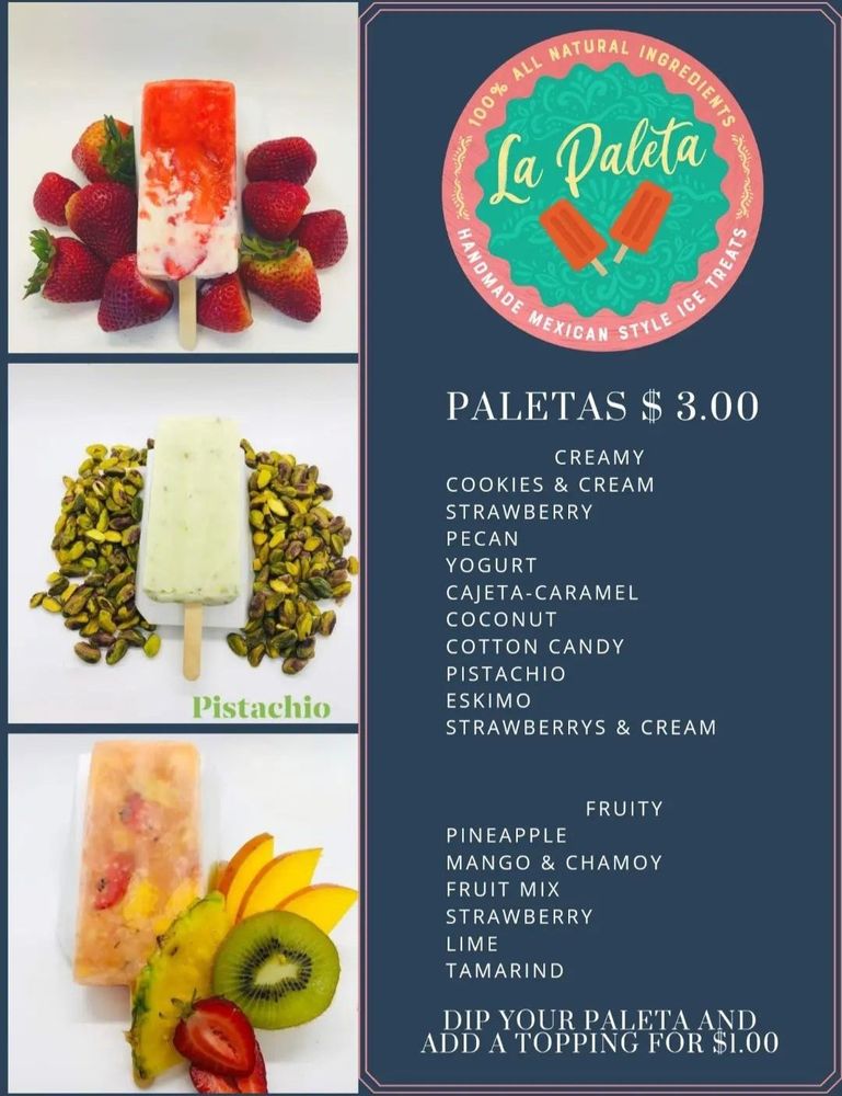 La Paleta, a Mexican food haven located in Las Vegas, offers a vibrant and flavorful menu that caters to all taste buds. From their refreshing Aguas Frescas to their decadent Tres Leches Cake, each dish is expertly crafted with quality ingredients. Customers rave about the creamy Paletas, with options to choose your favorite flavors, dip them, and add toppings for a personalized treat. The Fruit Cups are a delightful combination of creamy yogurt, fresh fruit, and tangy Tajin with Chamoy. The friendly staff provides excellent service and are always willing to accommodate customer preferences. With a cozy atmosphere and a variety of Mexican snacks, La Paleta is the perfect spot for a family outing or a quick snack on the go. Don't miss out on their signature dishes and welcoming ambiance at La Paleta in Las Vegas.